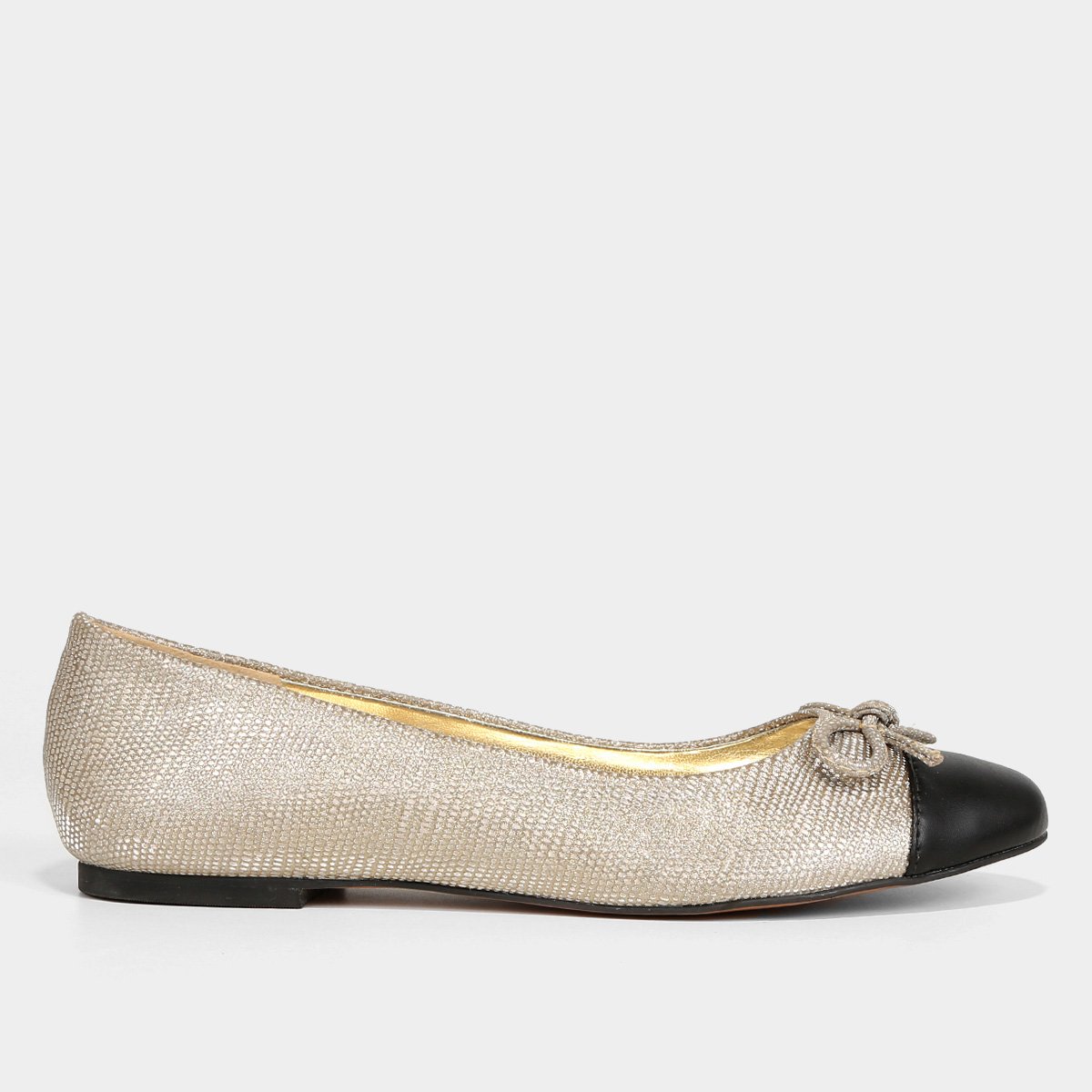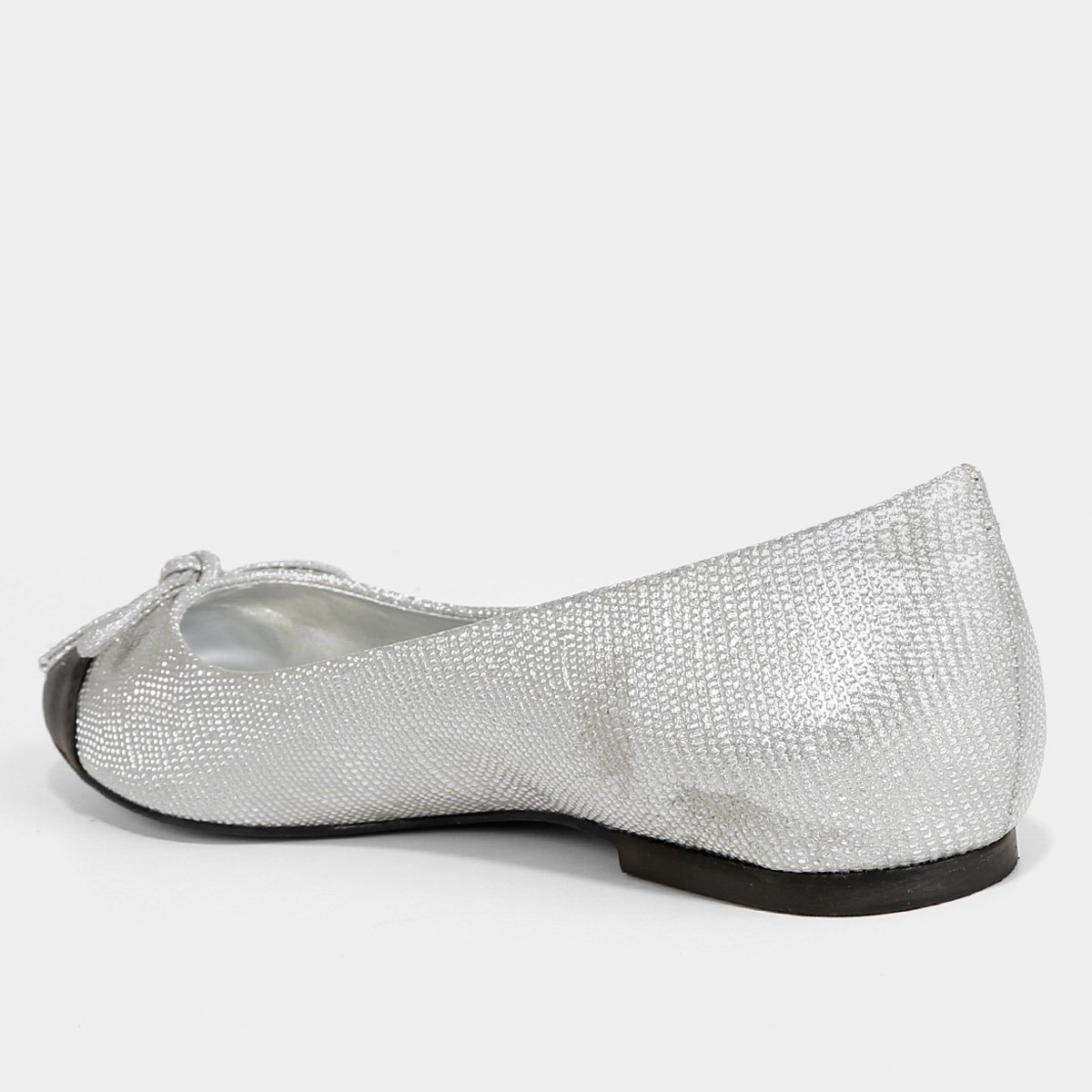 Sapatilha Shoestock Laço Bico Redondo Feminina - Preto+Prata