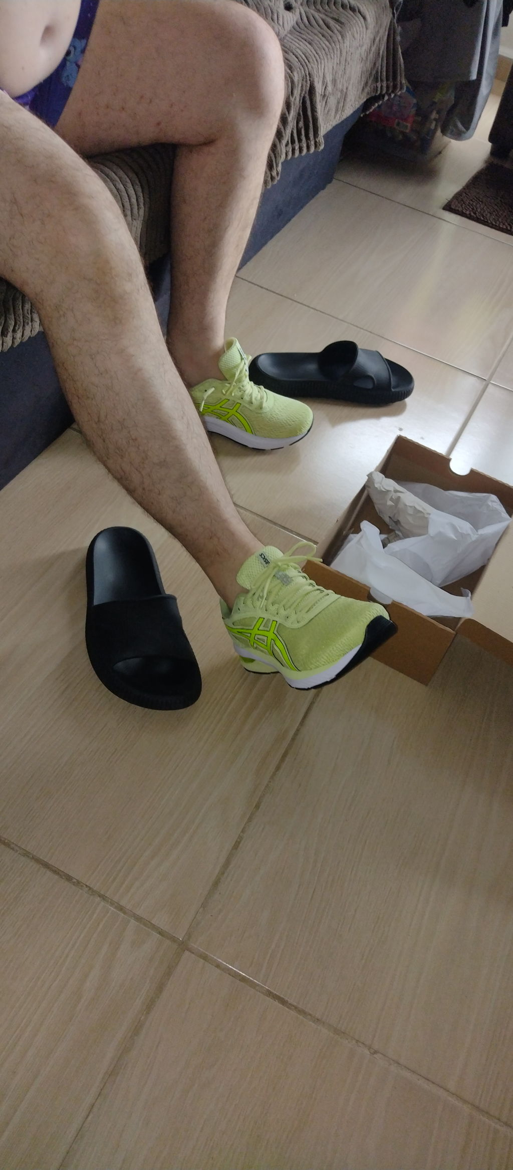 Tênis macio, porém o pé direito apertou um pouco. Ajustei o cadarço, o tênis é bem leve e esportivo. Muito bonito, e um pouco alto. Recomendo comprar um número a mais.